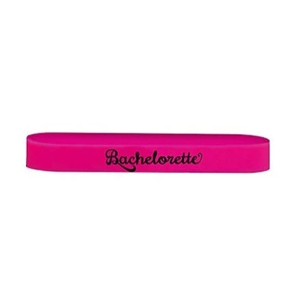 The  Bachelorette Bracelet is a precious momento for the Bachelorettes Last Night Out with her besties. The Hot Pink bracelet with black, sparkly Bachelorette imprinted is light weight, stretchy plastic. Just a little something extra for the Bride to Be. Search Bachelorette Superstore for more fun party attire and decorations at bargain prices.