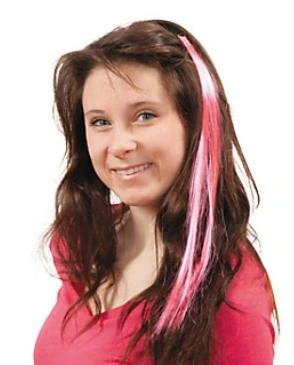With this Pink Hair Extension Clip you can flash your sass the next time you hit the town. Extension is synthetic and is 16″ long. It easily clips on to all hair types. 1 pc per pkg.